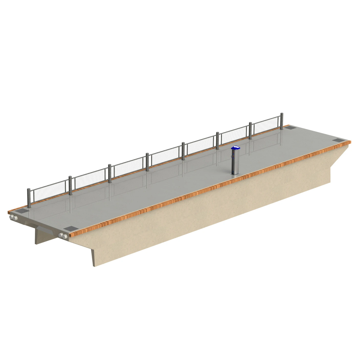 Flytende bølgedemper har en stor stabilitet og bæreevne og er konstruert for utsatte steder. Større bølgedempere har nedtrukne langsider, noe som øker pontongens dybde. Våre flytende bølgebrytere har en høy egenvekt, ligger dypt og har lav metasenterhøyde. Til sammen gir dette en førsteklasses evne til å dempe bølger. Valg av bredde på bølgebryteren bestemmes av dine spesifikke forutsetninger, for eksempel bølgeperiode, bølgehøyde m.m. Konstruksjonen består av armert betong med en kjerne av celleplast, hvilket gjør den synkefri og resulterer i en lang levetid. Dersom bredden økes, forsterkes den bølgedempende effekten ytterligere.