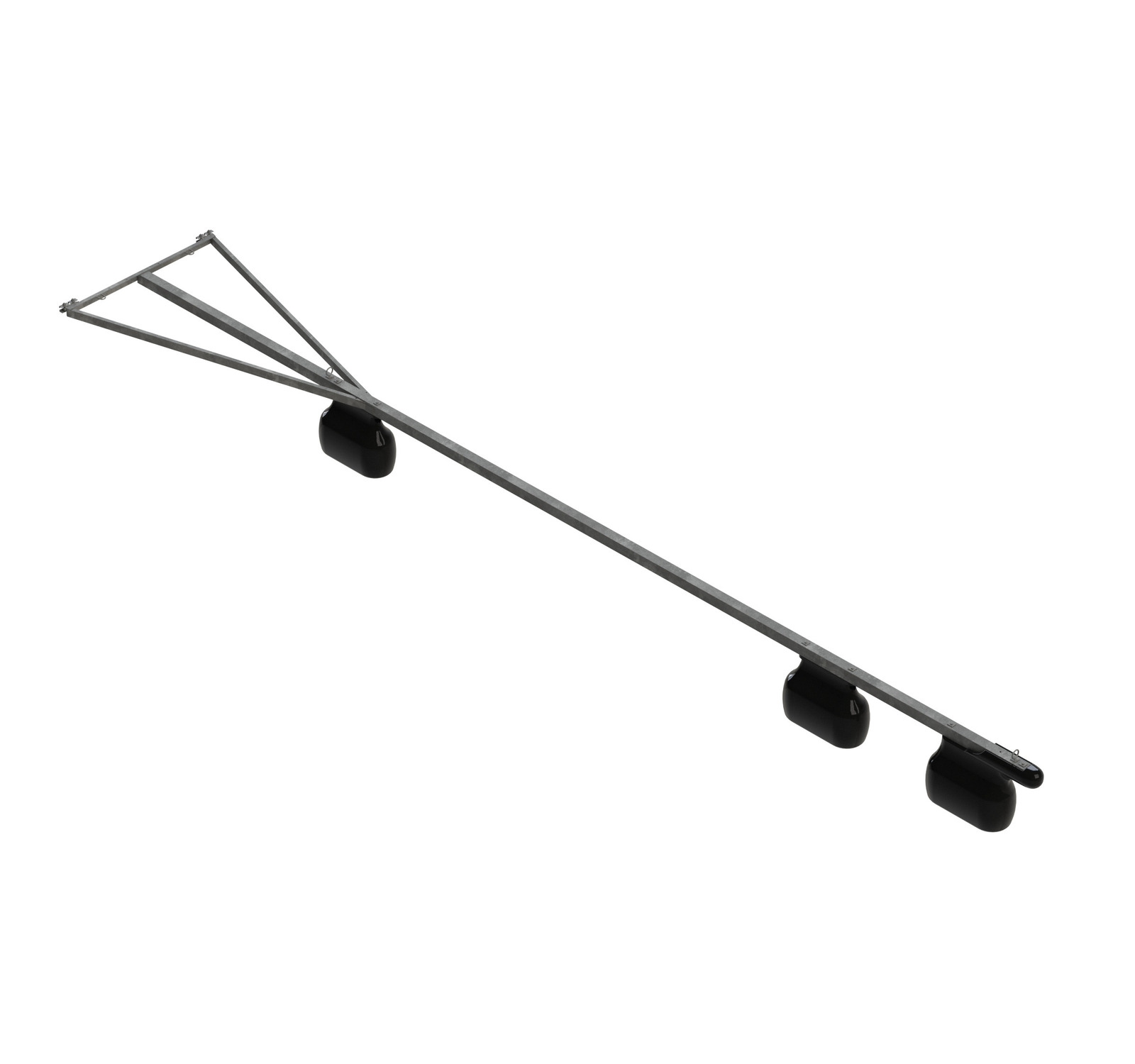 10m fortøyningsbom: Skråavstivere og arm basert på hulprofiler, galvanisert og helsveist. 10 meters fortøyningsbommer leveres ikke som avslutninger.